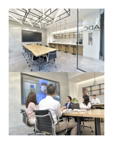 その一環としてADC内部の壁面に設置したのが大型モニターだ。ADCと、富士市や富士宮市を拠点とする生産工場、研究所をオンラインで繋ぎ、大型モニターを通じて中継。顧客は現地を訪れることなく、現地の実務担当者と密なやり取りを行えるようにした。